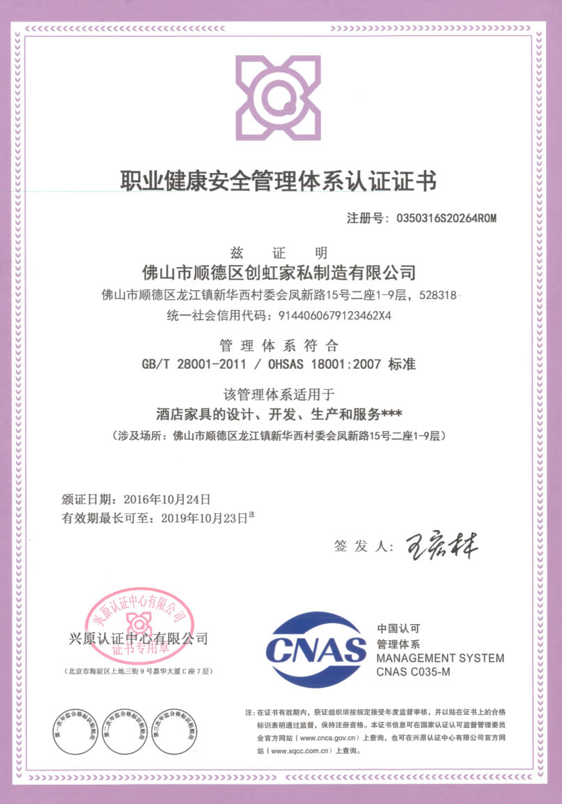 廣東創虹家具有限公司,位于素有“家具之都”稱號的廣東省佛山市順德區,是一家專業策劃、設計、生產、安裝酒店家具的制造企業。公司現有現代化廠房4萬平方米,擁有國內外先進的家具制造生產設備和家具生產技術工藝